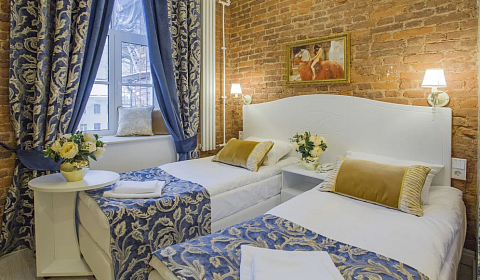 Гостиница расположена на территории Базилики Святой Екатерины Александрийской, одного из старейших католических храмов России, в самом сердце города на Невском проспекте, дом 32-34. Из ряда номеров открывается неповторимый вид на Базилику.
