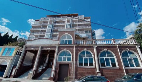 "Гранд Палас" (апартаменты) апарт-отель в Алуште расположен на первой линии моря. Он находится прямо на набережной-до пляжа идти примерно 5 метров. У нас есть апартаменты 1-комнатные, 2х-комнатные, 3х-комнатные и пентхаус с личным джакузи.