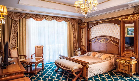 Отель "GRAND PALACE" принадлежит к новому поколению отелей высшего класса. В отеле сочетается элегантность прошлого, комфорт, роскошь интерьера, теплота и лучшие традиции обслуживания. Отель расположен в прекрасном месте городе–курорте Светлогорск Калининградской области, на побережье Балтийского моря. Отель "GRAND PALACE" – это великолепное место для особых праздничных мероприятий, элитных торжеств, модных шоу, свадеб, отдыха молодожёнов, влюблённых, семейных пар, а также для проведения деловых встреч, семинаров и конференций. Персонал отеля "GRAND PALACE" создаёт свой стиль сервиса, который является динамичным и современным, но включает традиционные элементы, способствующие удовлетворению ожиданий наших Гостей; Отель "GRAND PALACE" отвечает всем требованиям государственной системе классификации гостиниц РФ категории пять звёзд. Это первый отель в Калининградской области предлагающий услуги такого высокого уровня. К УСЛУГАМ ГОСТЕЙ: Оздоровительный центр (сауна, бассейн, тренажёрный зал) – посещение включено в стоимость номера; Открытый бассейн с зоной отдыха - посещение включено в стоимость номера; Частный пляж - посещение включено в стоимость номера.