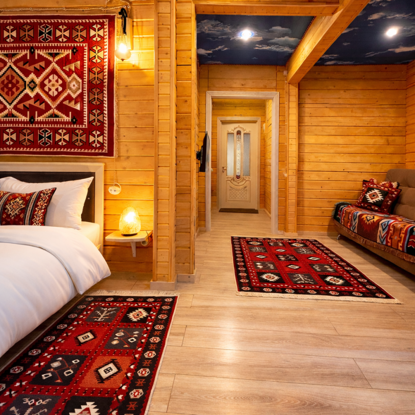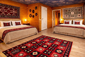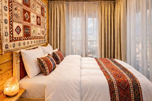 РАСПОЛОЖЕНИЕ: Отель расположен в самом центре поселка Архыз. В 5 мин. ходьбы множество ресторанов/кафе, развлекательных заведений, организаторы туров/экскурсий, магазины и другие замечательные заведения. В 10 мин. езды от отеля находятся подъемники на основные горнолыжные трассы курорта. За 10–30 мин можно доехать почти до всех основных точек притяжения гостей курорта Архыз. ---------------------------------------- УДОБСТВА В ОТЕЛЕ/НОМЕРЕ В отеле представлены номера различных категорий комфортности с высокими потолками и стенами из экологичного бруса. В номерах есть все необходимое для комфортного проживания: smart TV, wi-fi, мини-холодильник, фен, центральное отопление, светильники, розетки у кроватей. В каждом номере при заселении бесплатно предоставляются: свежее постельное белье, свежий комплект полотенец, тапочки, одноразовые зубные щетки, мыло, гели для душа, шампуни.