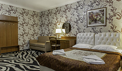 Номер на три места,двухспальная кровать и односпалка,в номере есть шкаф, стол,телевизор.