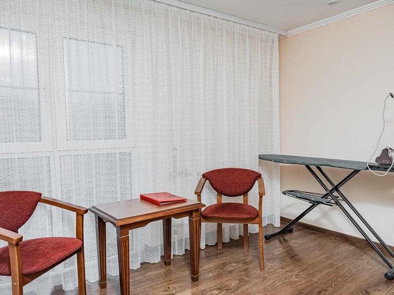 На территории санатория находятся: киноконцертный и танцевальный залы, библиотека, зал лечебной физкультуры с тренажерным комплексом, настольный теннис, бассейн, бильярд, кафе-бар, парикмахерская, кабинет лечебной косметики, маникюрный и педикюрный залы, магазин, аптека, охраняемая автостоянка.