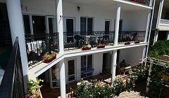 Отличный отельчик, Чистота, удобство, все новое, у каждого номера есть столик на террасе, в номере замечательная кровать с удобным матрасом и подушками и двухспальный диван, шкаф, телевизор, холодильник, все новое , чистое . очень заботливые хозяева отеля, на каждом этаже мини кухня, все новое, чистое, кухня примерно на 6 номеров, в пик наполняемости, если все вдруг соберутся готовить , может быть и тесно. до моря 10 минут. парковки нет , просто ставят на улице, но весь микрорайон застроен только такими мини-отелями, поэтому может быть и проблемы с парковкой , но в начале сезона проблем не было.