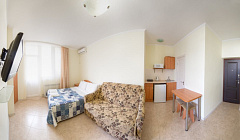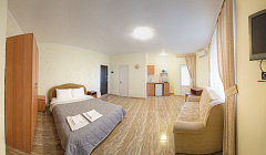 В номереНомер уютно обставлен и оснащён необходимым, чтобы отдохнуть после долгого и насыщенного дня. Имеются телевизор. Оснащение зависит от выбранной категории номера.