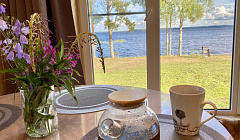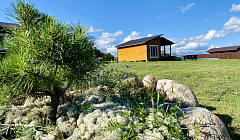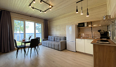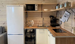 В гостевом домеВсесезонный гостевой дом ждёт гостей круглый год. Его площадь составляет 55 кв.м, высота потолков — 2.7 м. В гостевом доме панорамные окна с видом на озеро. Возможно проживание 6 гостей.