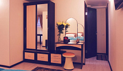 Расположение отличное, рядом есть тц где можно поесть и что-то необходимое купить, до центра нам было не далеко так как были на машине. Чуткий администратор был при заселении, к сожалению имени я не запомнила, она помогла и диван раздвинуть/застелить, заезжали уже очень поздно уставшие, помощь была кстати. Все необходимое для проживания было, попросили утром фен без проблем дали, уборку попросили-сделали. Постельное и полотенца чистые хоть мне они были жестковаты. С водой я немного помучалась, но это мелочи.