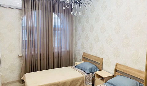 "Предлагаем вам арендовать уютную квартиру в доме на Хушетском шоссе, 18. Благодаря удачному местоположению дома, отсюда можно легко добраться как до Махачкалы, так и до Каспийска, где много интересных развлечений. Всего в 15 минутах ходьбы от квартиры находится комфортный и красивый пляж, на котором можно отлично провести время на берегу Каспийского моря. Для удобства во внутреннем дворе имеется парковочное место для вашего автомобиля, а также недорогое кафе с вкусной местной едой. Это двухкомнатная квартира с современным ремонтом и мебелью. Она отлично обустроена и учитывает все необходимые потребности путешественников, вне зависимости от того, арендуют они квартиру для отдыха или для работы. Две комнаты, прихожая, кухня, ванная. Комнаты просторные в приятных тонах и с хорошим освещением. В первой комнате: раздельные кровати с новыми ортопедическими матрасами и свежим постельным бельем, одеялами,На окнах шторы блэкаут, которые помогут выспаться в любое время дня и ночи.кондиционер с дистанционным управлением и множеством режимов.прикроватная тумба, вместительный шкаф для хранения ваших вещей, Во второй комнате для вас: два мягких раскладывающихся дивана, которые дают дополнительные спальные местана окнах шторы блэкаут, которые помогут выспаться в любое время дня и ночи.удобный стол для работы или обеда, современный телевизор Smart TV с бесплатным набором HD каналов, большой шкаф для хранения вещейБольшая, светлая кухня, где вы найдете:электрический чайник, вместительный холодильник нормального размера с морозильной камерой, набор необходимой посуды, включая две кастрюли, сковороду, чашки, тарелки приборы и тому подобное.современную стиральную машинуВ ванной для вас все необходимые принадлежности: фен, чистые полотенца, одноразовые тапочки, мыло, шампунь и гель для душа.Также в квартире есть:утюг и гладильная доска.Квартира сдается на сутки, на пару дней или в аренду на более длительный срок.