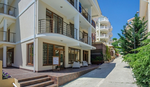 Отель находится в тихом месте. Рядом много зелени, минипарк с детской площадкой, вдали от шумной набережной, но в пешей доступности. Рядом магазин (где есть все - от продуктов до стирального порошка), палатка с фруктами и пляжными принадлежностями. До пляжа нужно пройтись пешком минут 5-7 с горки, обратно, конечно, нужно возвращаться в горку, но мы восприняли это как физ нагрузки после плотных завтраков-обедов))) Рядом электромобили, на которых можно проехать всю набережную до основных развлечений и всей шумихи.