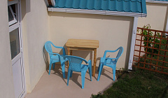 : "Люкс с кухней" 3х-местный , "Студия" , "Домик с мини-кухней" 3х-местный , "Отдельный домик" 4х-местный , "Отдельный домик" 5-местный , "Домик с мини-кухней" 4х-местный , "Отдельный домик" 3х-местный , в каждом имеется удобная мебель, необходимая для полноценного отдыха.