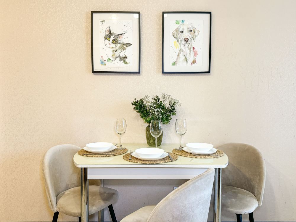 Квартира "Хвостик на отдыхе" в новом жилом комплексе Бельведер. Живите в нашей квартире с любимым питомцами. Хватит искать гостиницу для животных. Разделите радость отдыха на море с любимыми кошками и собаками. ✅В КВАРТИРЕ: *Двуспальная кровать 160*200 см с новым ортопедическим матрасом Аскона в спальне *Удобный двуспальный диван 120*190 см на кухне *Оборудованная кухня (холодильник, индукционная плита, микроволновая печь, чайник, вытяжка). *Стиральная машина, фен, утюг *Сплит-система в спальне *Сетка на окнах *Набор посуды и столовых принадлежностей на 4 персоны *Смарт-ТВ и высокоскоростной Wi-Fi *Каждому гостю предоставляется по 2 полотенца (банное и для лица), полотенце для ног. *2 комплекта белого постельного белья