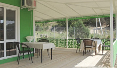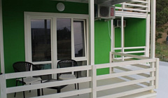 Новый чистый отель. В номере чайник, посуда, холодильник. По 3 полотенца на человека, удобная кровать с хорошим бельем. Шикарный балкон со столиком и креслами. Общая полностью оборудованная кухня с выходом на террасу где приятно завтракать и ужинать. Есть стиральная машинка. Отель находка для любителей тихого отдыха и пеших прогулок.Отдельное спасибо радушным хозяевам готовым помочь в решении любой проблемы.