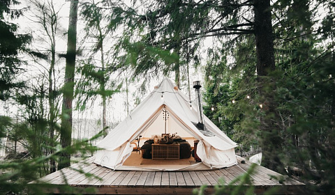 Тент красивый вид из окна (общая ванная комната)