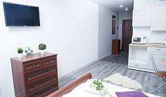 В номереНомер уютно обставлен и оснащён необходимым, чтобы отдохнуть после долгого и насыщенного дня. Имеются телевизор и халат. Перечисленные услуги есть не во всех номерах.