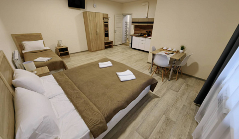 Просторный свежеотремонтированный номер. Четыре кровати на одного. Та в которой спал я была очень удобной. Полагаю остальные были такими же. Все чистенько и уютненько. Холодильник и телевизор в комплекте. Хороший и быстрый вайфай.