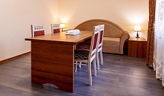 В числе удобств: односпальные или двуспальная кровати, прикроватные тумбочки, стол, стулья, телевизор, интернет Wi-Fi, санузел и душ.