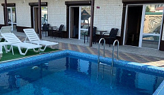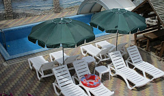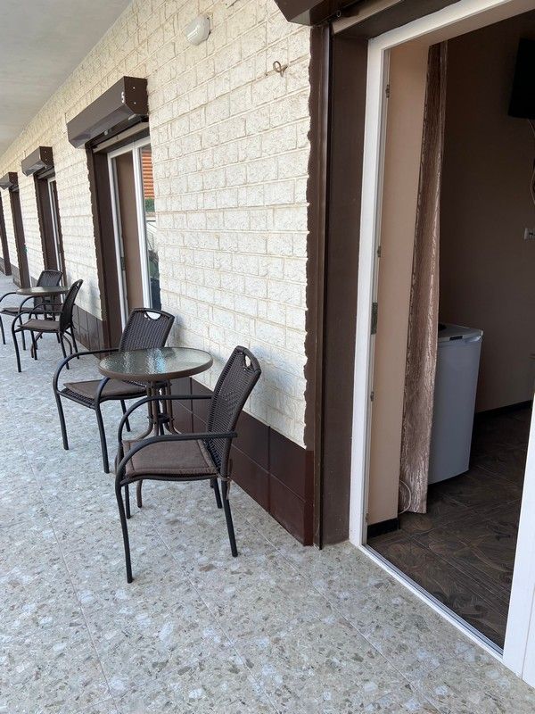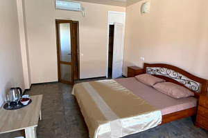 Трехэтажный корпус гостиницы (без лифта) занимает закрытую территорию, на которой установлены камеры видеонаблюдения. Отдыхающим предлагаются 2х-местные 1-комнатные и 4х-местные 2х-комнатные 2х-этажные номера, в которых имеются санузлы, кондиционеры, телевизоры, холодильники, электрочайники.