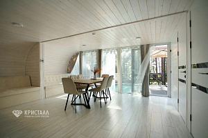 В загородном комплексе "Кристалл" на берегу озера есть уникальная баня, где вы сможете насладиться полным расслаблением и оздоровлением. В бане есть все необходимое для комфортного отдыха: деревянная парная, отдельная зона для отдыха, где можно расслабиться и отдохнуть после прогулок и купания.