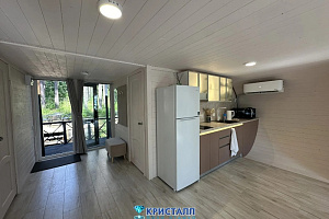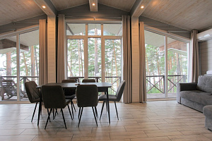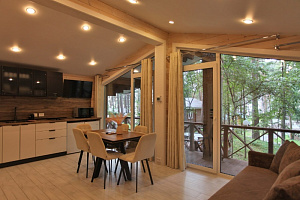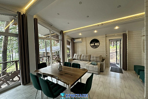 Если вы предпочитаете более традиционный отдых, к вашим услугам коттеджи. Они просторные, с современными удобствами, идеальны для семейного отдыха или больших компаний. Коттеджи окружены деревьями, что создаёт ощущение уединения и спокойствия.