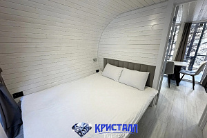 Отдых на базе "Кристалл" — это возможность погрузиться в комфортное окружение, сохраняя связь с природой. Домики-бочки — одна из уникальных особенностей базы. Они выглядят как большие деревянные бочки, но внутри оснащены всем необходимым для комфортного проживания. Это не просто необычное жильё — это интересный опыт, который запоминается. Пляж на базе "Кристалл" небольшой, но ухоженный. Здесь можно не только позагорать и искупаться, но и заняться различными водными развлечениями, например, катанием на катамаранах или сап бордах, так что каждый найдёт здесь место для отдыха.