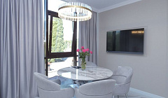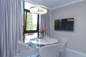 Квартира находится на территории парковой зоны, рядом с домом расположен отель "Лучано". Придомовая территория заслуживает самых восторженных характеристик. Рядом с домом граничит сквер "Фестивальный". В 5-10 минутах ходьбы находятся зелень, пальмы, бамбуковые рощи, поющие птички, лавочки для влюбленных, плитка - это при том, что и локация просто шикарная, (Дендрарий, Цирк, Жемчужина, Зимний Театр и многое из самых топовых мест в Сочи). Район "Светлана" - Туристический центр, гуляющие за ручку парочки, отсутствие шума и хамства, инфраструктура. Квартира только приобретена, сделан ремонт, куплена новая мебель. Вмещает 4-5 человек, оснащена полноценной кухней, посудой, фактически, вы как дома. Соседи все адекватные, тихо и уютно, Можно писать книги и картины. В доме на 1 этаже находится детская комната и детский садик, Куда родители могут на любое время определить ребенка под ответственность воспитателя, и может не переживать за его пребывание. Собственник имеет статус Супер-хозяина, которым очень бдит. Лояльность, честность, забота, это составные комфорта, которые вы получаете, останавливаясь в нашей квартире.