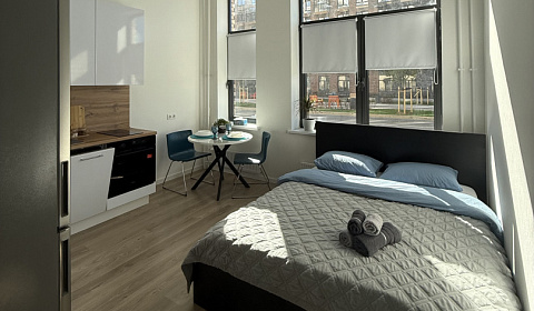 В новом современном ЖК «Новое Внуково» сдается посуточно уютная студия с дизайнерским ремонтом в 10-15 минутах езды от аэропорта Внуково или от метро Пыхтино, Внуково, Санино. Отличительной особенностью этой студии являются высокие потолки и панорамные окна, которые создают ощущение простора. Из окна открывается вид на аллею. Апартаменты оснащены кондиционером и шторами блэкаут.