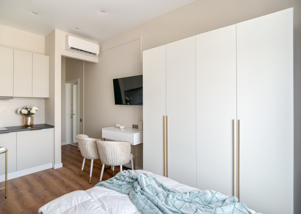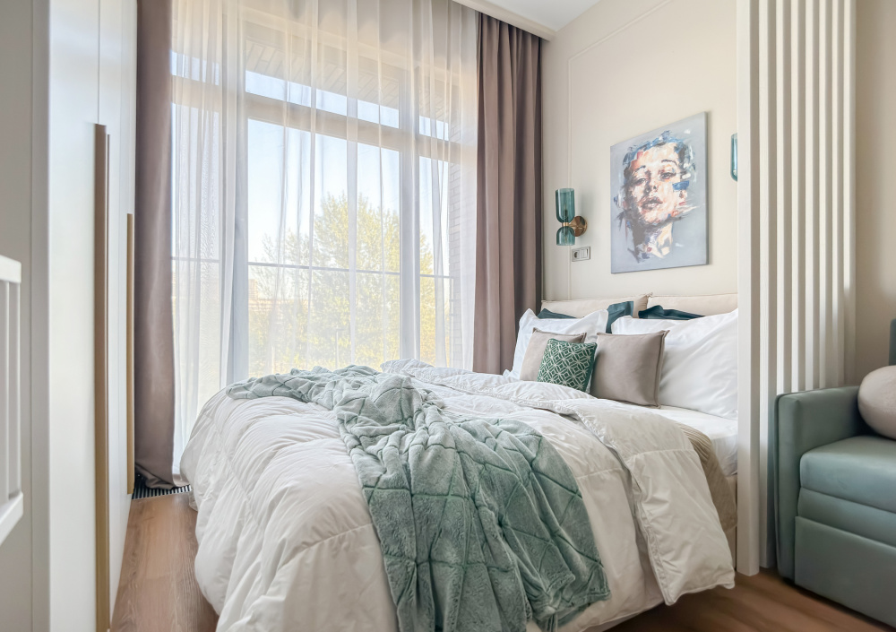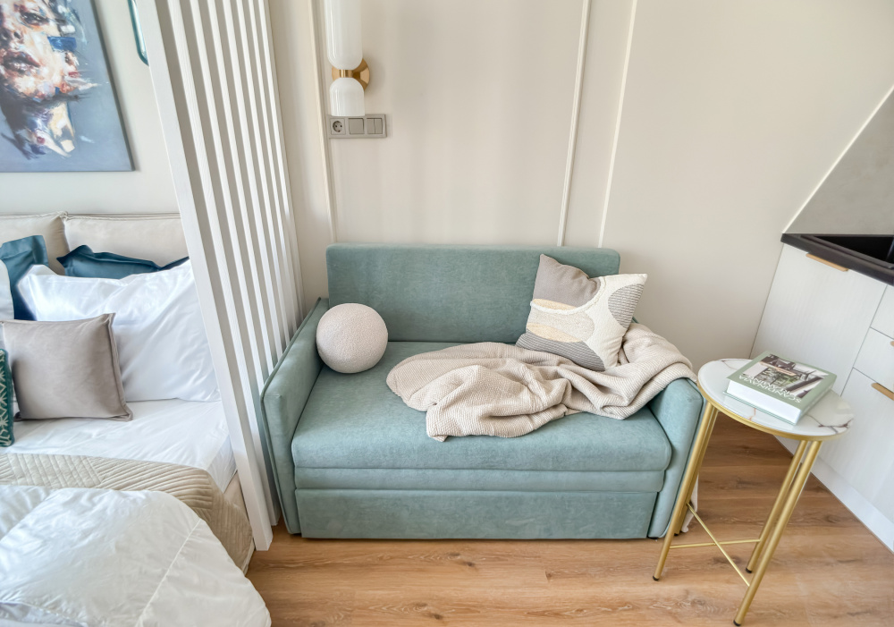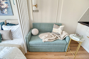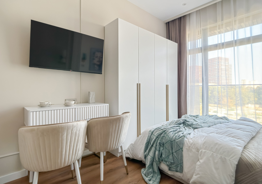 В квартире есть все необходимое для проживания 3-х человек: - ортопедическая двуспальная кровать; - диван раскладывается (1 место); - кондиционер, Wi-Fi, Smаrt-ТV; - гладильная доска, утюг, сушилка; - постельное белье, комплект полотенец.