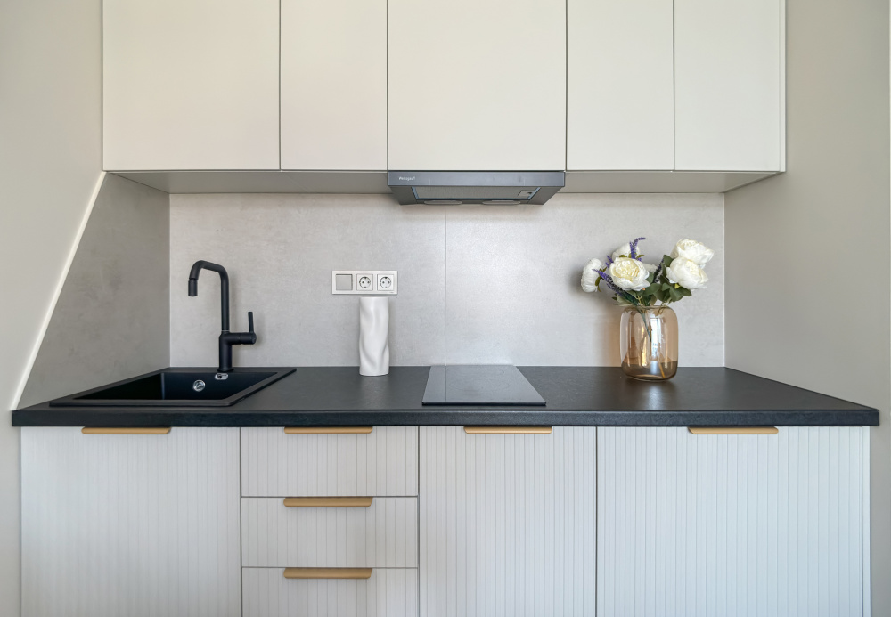 Кухня: - плита, чайник, холодильник; - набор посуды и вся необходимая утварь; - чай, кофе, соль, сахар.