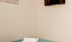 - Двуспальная кровать (140х200) и белоснежное постельное белье.