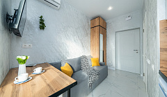 Идеальные условия для двоих: Просторная студия площадью 14.6 кв.м., оборудованная всем необходимым для вашего беззаботного отдыха.