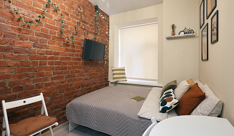 Уютная студия с дизайнерским ремонтом и оборудованной кухней. Расположена в центре Санкт-Петербурга. Выходя из номера, вы тут же получаете удовольствие от неповторимой архитектуры города.