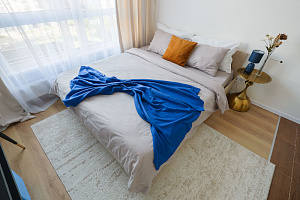 В квартире есть все необходимое для проживания 2-х человек: - двуспальная кровать; - Wi-Fi, Smart-TV; - гладильная доска, утюг, сушилка; - постельное белье, комплект полотенец.