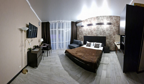 Полностью оборудованная кухня: Все необходимое для приготовления вкуснейших блюд уже есть — посуда, варочная панель, микроволновая печь, холодильник, электрический чайник и даже вытяжка. Готовьте с удовольствием!