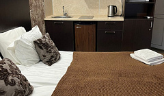 Ваш номер оснащен кондиционером, большим телевизором, феном, утюгом, качественным Wi-Fi и проводным интернетом. Постельное белье, халаты, тапочки и гигиенические принадлежности также включены.