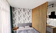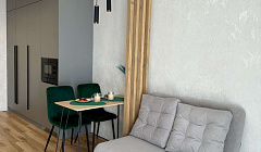 Описание квартиры: • Студия с просторной планировкой, свежий ремонт, современный дизайн. Дом сдан в 2025 году. • Удобная двуспальная кровать (160 см) + диван (115 см), который раскладывается. • Полностью оборудованная кухня: плита, микроволновка, чайник, холодильник, капсульная кофемашина, посуда. • Санузел с душевой кабиной, предоставляются полотенца и средства гигиены (шампунь, гель для душа, ватные палочки и диски). • Wi-Fi, ТВ, кондиционер, утюг, фен, гладильная доска. • Круглосуточное заселение. • Проведение уборки с применением антисептических средств.