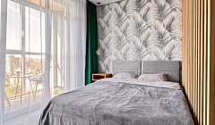 Квартира расположена на 9 этаже, из окон открывается потрясающий вид на городские панорамы и зелёные насаждения. Особенно впечатляет вечерняя атмосфера, когда город оживает огнями. Это идеальное место для спокойного отдыха после насыщенного дня.