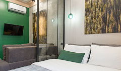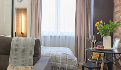 Хороший ремонт, приятные дизайнерские мелочи в интерьере. В ванной комнате кроме стандартного мыла и щеток, положили ватные палочки, ватные диски, предметы женской гигиены и даже мицелярную воду, чего я в других апартаментах не видела. Достаточное количество полотенец. Хорошее постельное белье. Хороший комплект посуды. Книги. У входной двери щетка для обуви. Всё продумано до мелочей и сделано для того, чтобы гости чувствовали себя уютно и комфортно.
