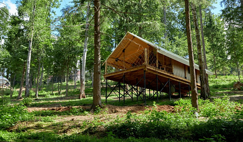 Тент с балконом и с красивым видом из окна (общая ванная комната)