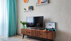 Бытовая техника: холодильник, варочная поверхность, пароварка, микроволновая печь и вся посуда, необходимая для приготовления и принятия пищи; стиральная машина, сушилка для белья, гладильная доска, утюг, фен, высокоскоростной интернет Билайн, Wi-Fi, IP TV, Smart TV.