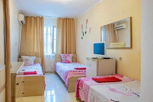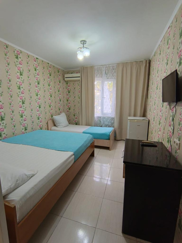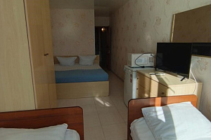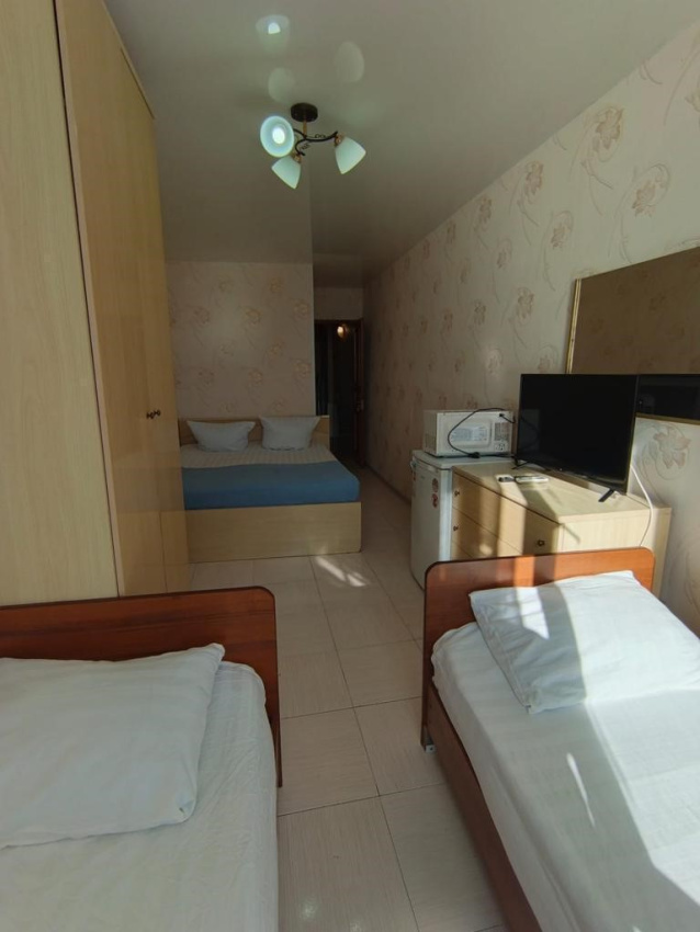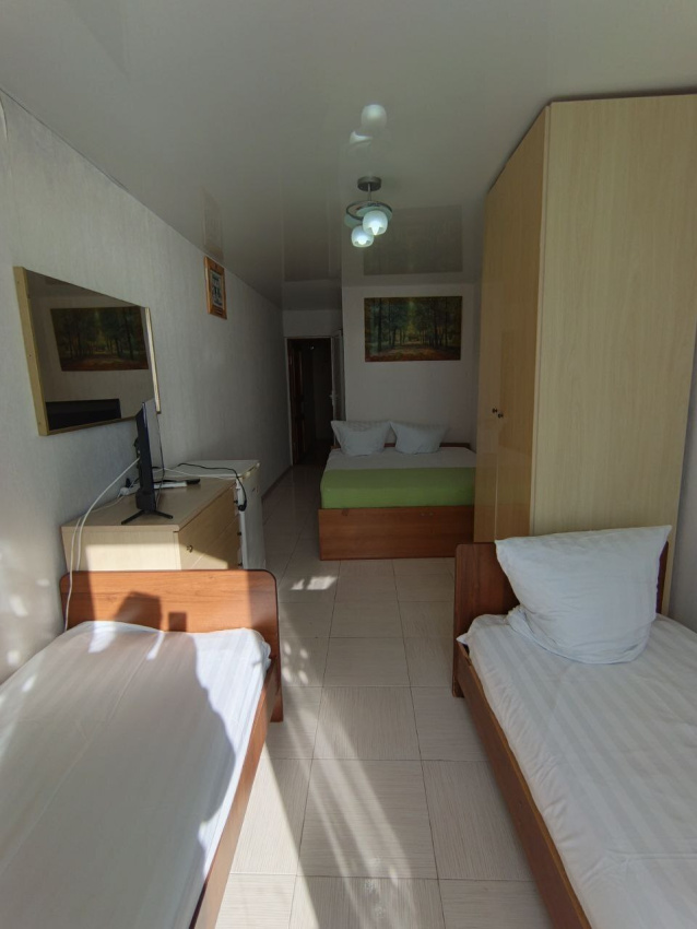 Комнаты рассчитаны на отдыхающих от 3-х до 4-х человек, бесплатное размещение одного ребенка до 3х лет без предоставления дополнительного места.