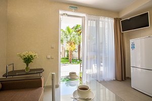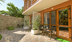 Мини-отель "МАЛИБУ" работает с июня 2019г. Расположен в районе автовокзала, 950 метров от Центральной набережной г. Алушта. Рядом есть мини-рынок, магазины, кафе, транспорт. Апартаменты гостевого дома оборудованы качественной европейской сантехникой, мебелью, имеется вся современная бытовая техника. Первый этаж -это двухместные номера студии с личной кухней в номере и открытой террасой. Второй и третий этаж- комфортные номера с балконами и общими кухнями на каждом этаже. В каждом номере имеется кондиционер, холодильник, телевизор, чайник, сейф. В ванной комнате предоставляются фен, тапочки, туалетные принадлежности. В осенне-зимний период проживания тепло и уют обеспечат "теплые полы". На территории имеется каминная зона барбекю. К услугам гостей прачечные и гладильные услуги. Ограничения: Размещение с животными не допускается. Дети до 5 лет.