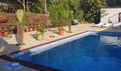 Сплошные плюсы!С того момента как встретили на вокзале в 4ч утра,начался сплошной рай!Двор утопающий в зелени и цветах,бассейны,зоны отдыха,барбекю,детская зона,водоемчик с рыбками и лилиями.Проживание в номерах на любой кошелек!Близость к морю,магазинам,разным столовым.Атмосфера всегда очень доброжелательная.Хозяевам Владимиру и Марине отдельная,сердечная благодарность за все!!На море куча всякого -парашюты,катамараны,таблетки,морские прогулки!Пляж галька и крупная и мелкая.Всем советую отдыхать в Г.Д.Маяк!Не пожалеете!!!