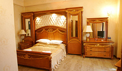 Номера обставлены шикарной итальянской мебелью, выполненной из массива дерева.