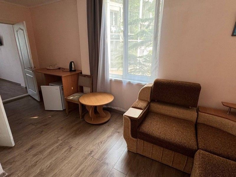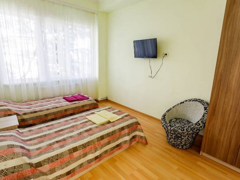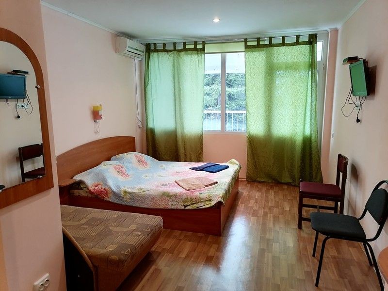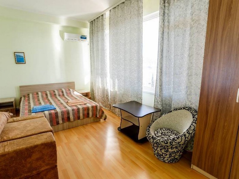 Понравилось все!!! Все остались довольны, несмотря на то что выбрал 5 этаж. Подниматься по ступенькам тяжеловато, но зато полезно. Номер сам очень просторный, с прекрасным видом на море ,на город и Аю-Даг. Великолепный вид. в номере все необходимое есть. ТВ, кондиционер ,холодильник, чайник. не испытали ни каких проблем. СКАЗКА да и только. на территории б/о тихо, кругом зелень, Цветы, деревья. Свою столовая. Кормили отлично. Сначала ходили в столовую в городе. вкусно но дороговато. решили обедать на б/о. Персонал очень добрый, вежливые и культурные люди работают. Большое им СПАСИБО!!! Обязательно вернемся в Крым и только сюда. Спасибо вам от Евгения, Натальи и Гоши!!