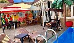 Гостевой дом "МЕЛАНЖ" приглашает Вас насладиться гостеприимством. Морское побережье, всего в 5 минутах ходьбы. На территории: стационарный бассейн с системой фильтрации, шезлонги, просторная зона отдыха, закрытый зал-столовая создают идеальное пространство для комфортного пребывания вне зависимости от погодных условий, для приятного отдыха всей семьей или компанией друзей. Условия проживания: Уютные номера идеально подходят для отдыха, оснащены телевизором, холодильником, сплит-системой, С/У в номере. Все номера с выходом на террасу, оснащенной мебелью для отдыха. Wi-fi на территории. Возможность самостоятельно приготовить любимые блюда благодаря наличию кухни с необходимым оборудованием, уютный зал-столовая, а если вы хотите отведать блюда на мангале, Вас ждет индивидуальная зона-барбекю с беседкой, только для Вас и Вашей компании. Придомовая парковка под видеонаблюдением. Наслаждайтесь тишиной и красотой природы, находясь всего в нескольких минутах от моря. Гостевой дом "МЕЛАНЖ" ждет вас!