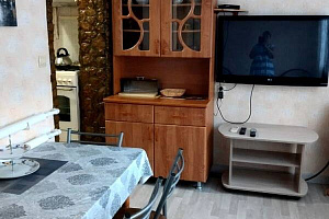 В нашем уютном гнездышке есть всё, что нужно: комод, стулья, тумбочки, шкаф, кровати односпальные, кровать двуспальная, диван-кровать, кресло-кровать, журнальный столик, кухонный стол, обеденный стол, стол, посуда , интернет Wi-Fi.