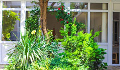 - зеленый внутренний дворик с местами для отдыха