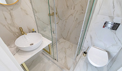Ванная комната: - душевая, фен; - стиральная и сушильная машина (в холле); - косметические принадлежности (шампунь, гель для душа, мыло).