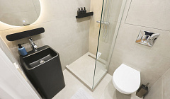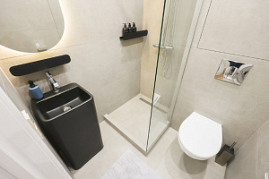 Ванная комната: - душевая, фен, стиральная и сушильная машина; - косметические принадлежности (шампунь, гель для душа, мыло).