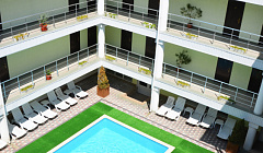 нам понравился сам отель, несмотря на то, что комнаты не самые модерновые, нас все устроило. номера просторные, с балконом, телевизор и интернет хорошие, бассейн чистый. также удобно было то, что прямо при отеле есть магазин и столовая с демократичными ценами.