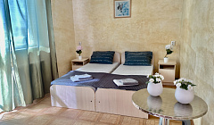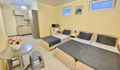 Наш гостевой дом предлагает своим гостям различные варианты размещения: от двухместных номеров до пятиместных и номеров-студий с кухнями. Во всех номерах есть санузлы, телевизоры, сплит-системы.